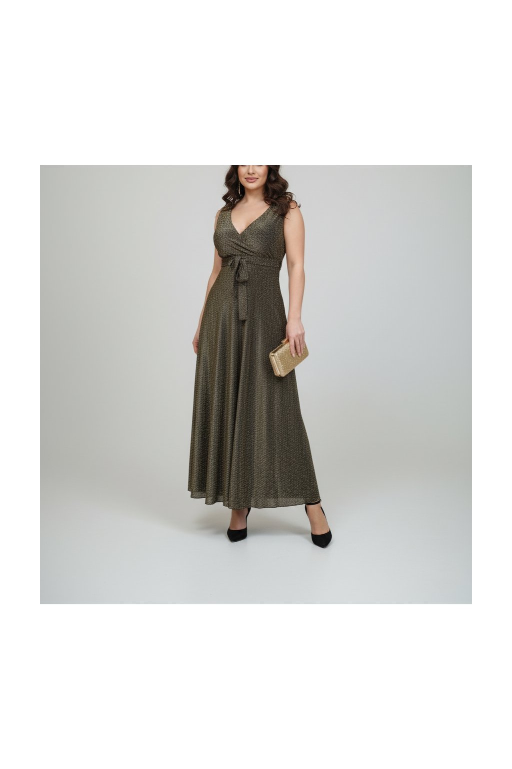 Dlouhé zlatavé šaty s přepásáním v pase – Versai Gold