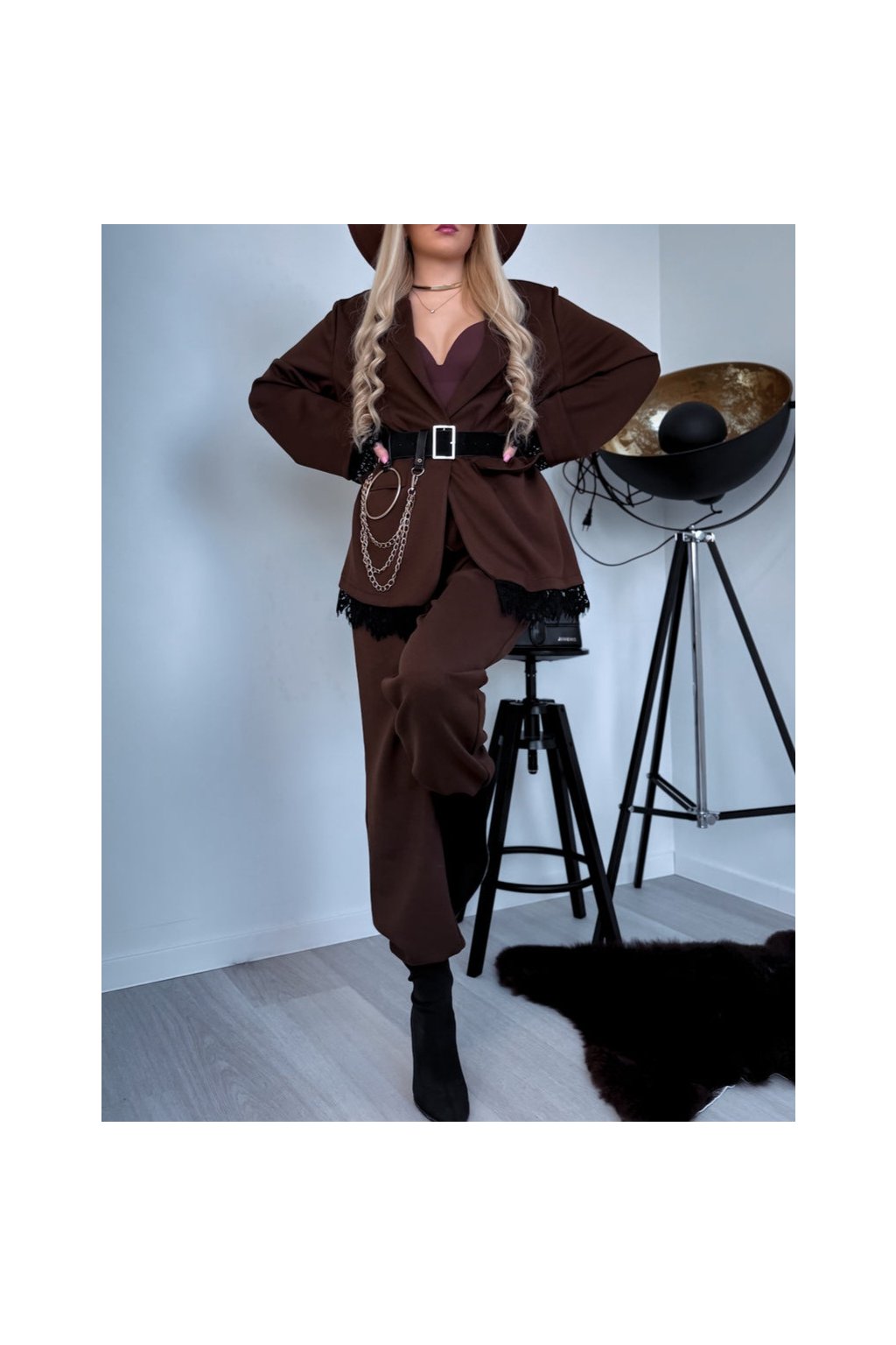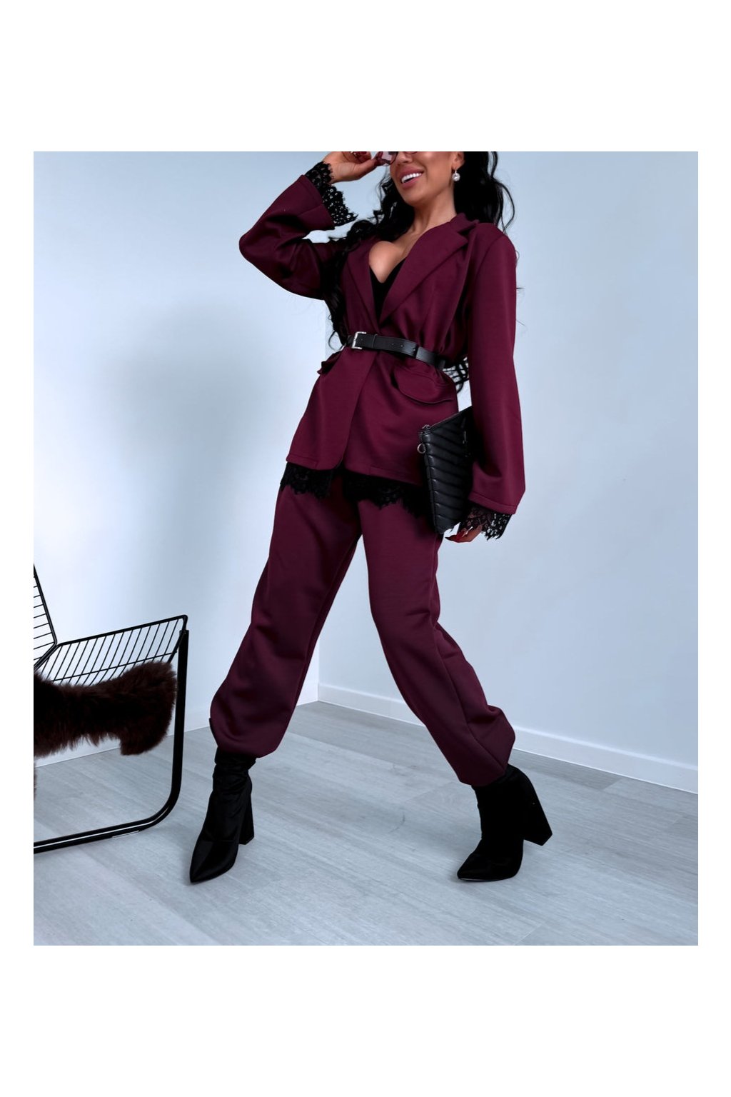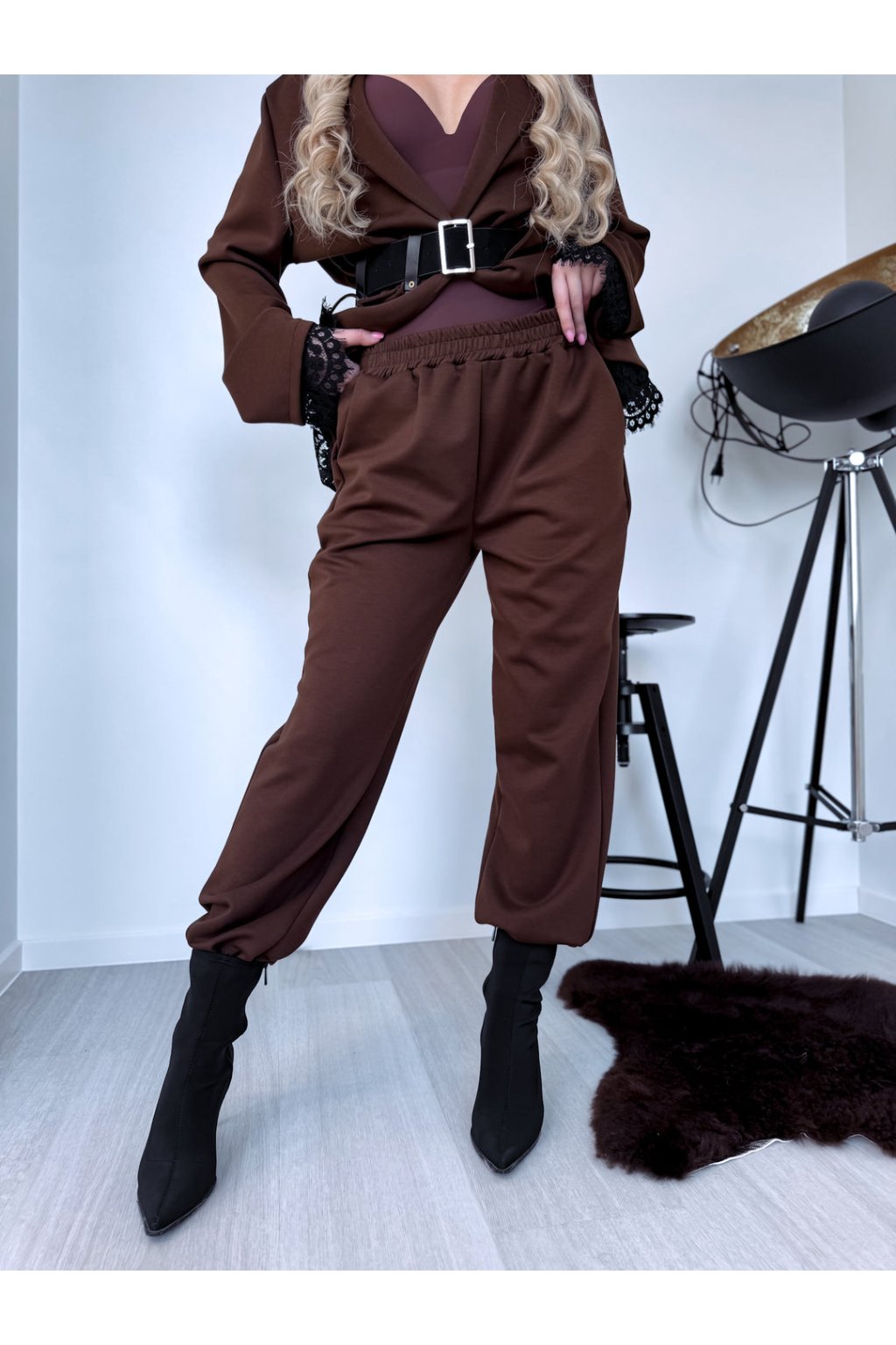 Set obsahuje: Sako s krajkovými lemy a ladící kalhoty.