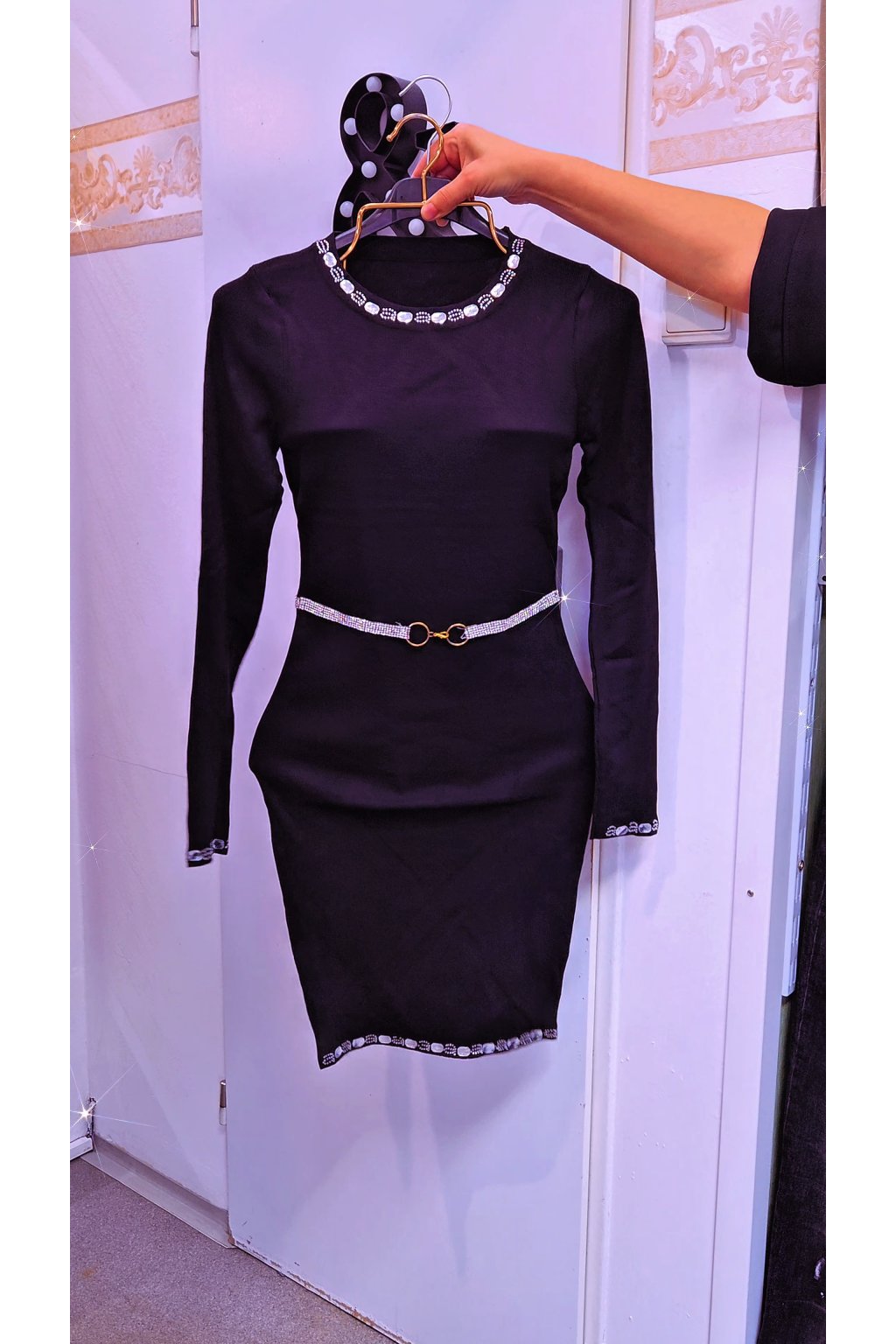 Dopřejte si nadčasovou eleganci s našimi šaty Bella Crystal, které dokonale podtrhnou ženskou siluetu. Šaty mají jemně přiléhavý střih, dlouhý rukáv a zdobné crystal detaily na výstřihu, manžetách a spodním lemu — díky nim působí luxusně a výjimečně. Součástí je také dekorativní pásek, který krásně zvýrazní pas.