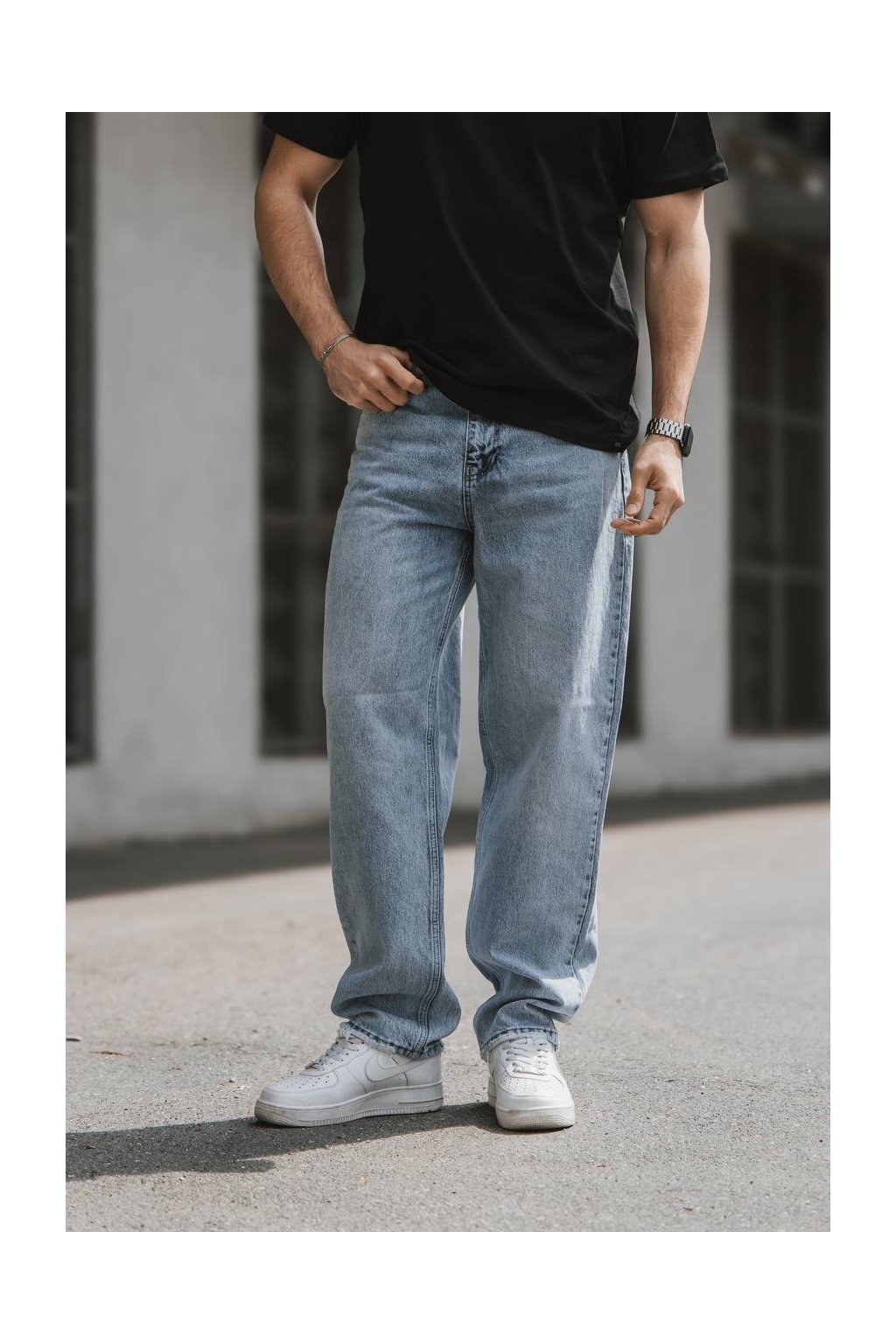 Volné baggy džíny v trendy světle modrém odstínu s lehkým washed efektem. Díky uvolněnému střihu poskytují maximální pohodlí a zároveň působí stylově a moderně. Perfektní volba pro streetwear outfit i ležérní kombinace s tričkem nebo mikinou.