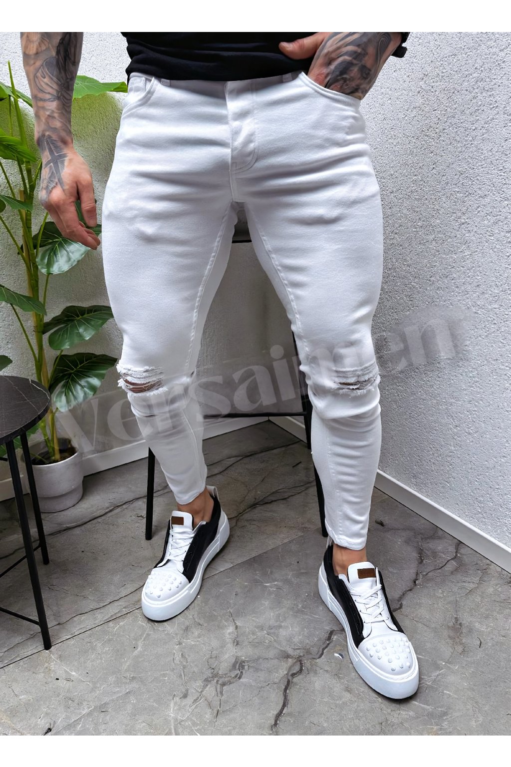 Oživte svůj šatník s kouskem, který má styl! Hledáte kalhoty, které nezapadnou v davu? Tyto pánské bílé džíny v oblíbeném úzkém střihu (slim/skinny fit) jsou perfektní volbou pro muže, kteří sledují trendy a nebojí se ukázat svůj styl. Výrazným prvkem tohoto modelu jsou stylově potrhaná kolena, která kalhotám dodávají ležérní, lehce rebelský streetwearový nádech.