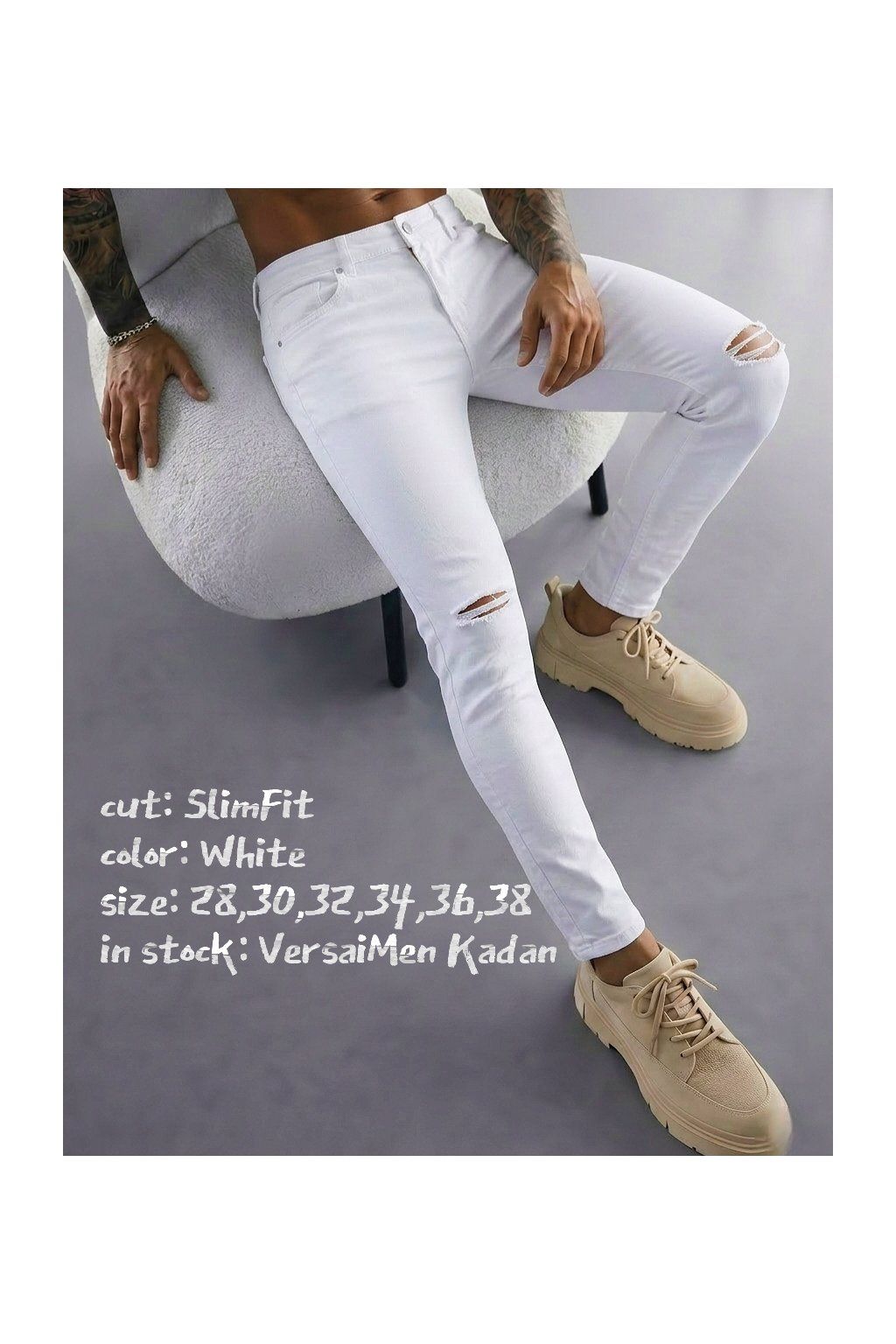 Design: Čistě bílá barva s moderním "destroyed" efektem (trhaná kolena)