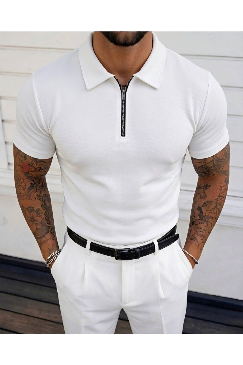 Posuňte svůj styl na vyšší úroveň. Oživte svůj šatník s tímto moderním pánským polo tričkem, které dokonale spojuje klasickou eleganci s neotřelým designem. Tradiční zapínání na knoflíčky jsme nahradili stylovým kovovým zipem, což tričku dodává prémiový, dynamický a velmi moderní vzhled.