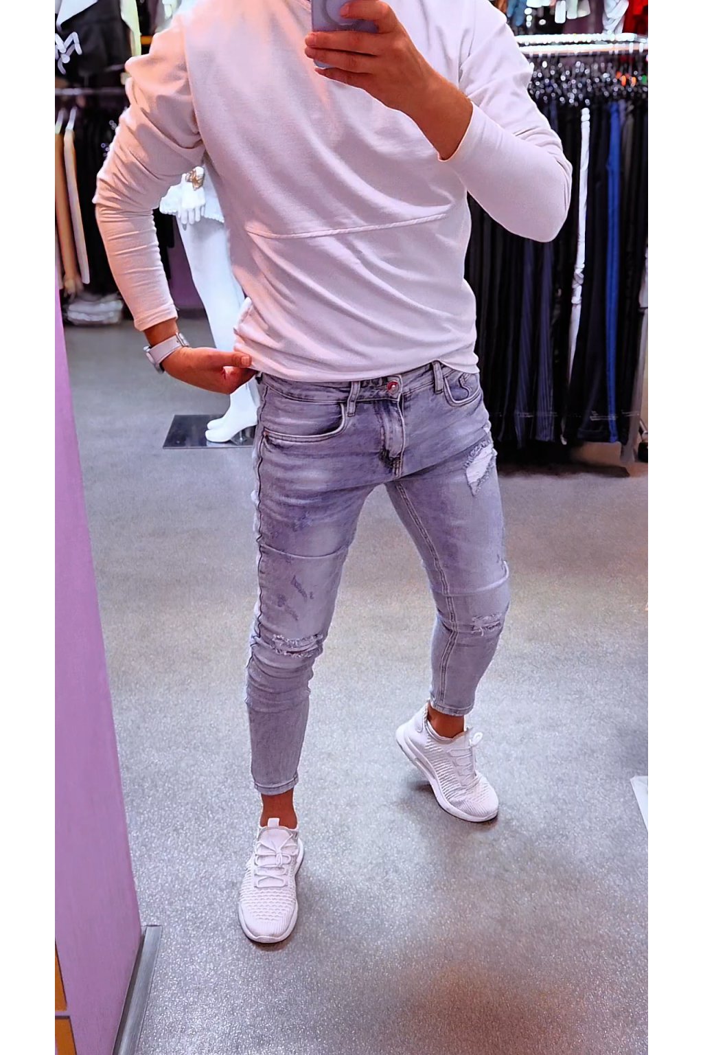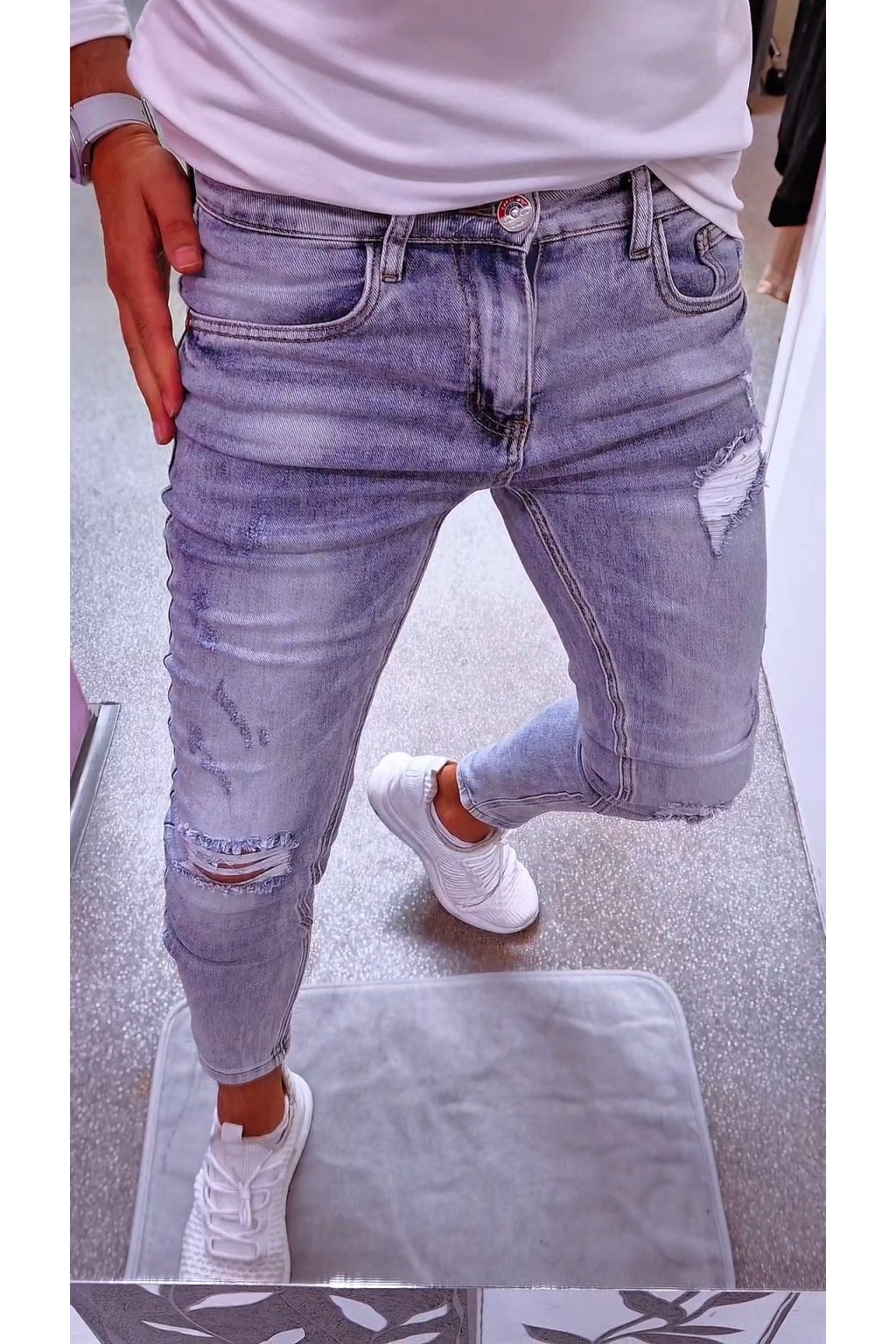 Detaily: Stylový distressed look s menšími trhlinami na stehnech a kolenou, které dodávají kalhotám dravý a neformální šmrnc.