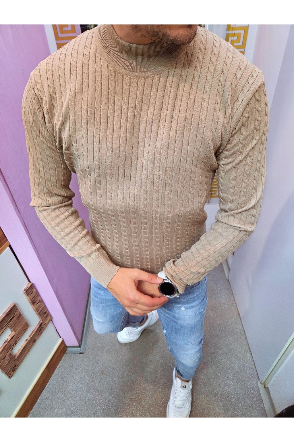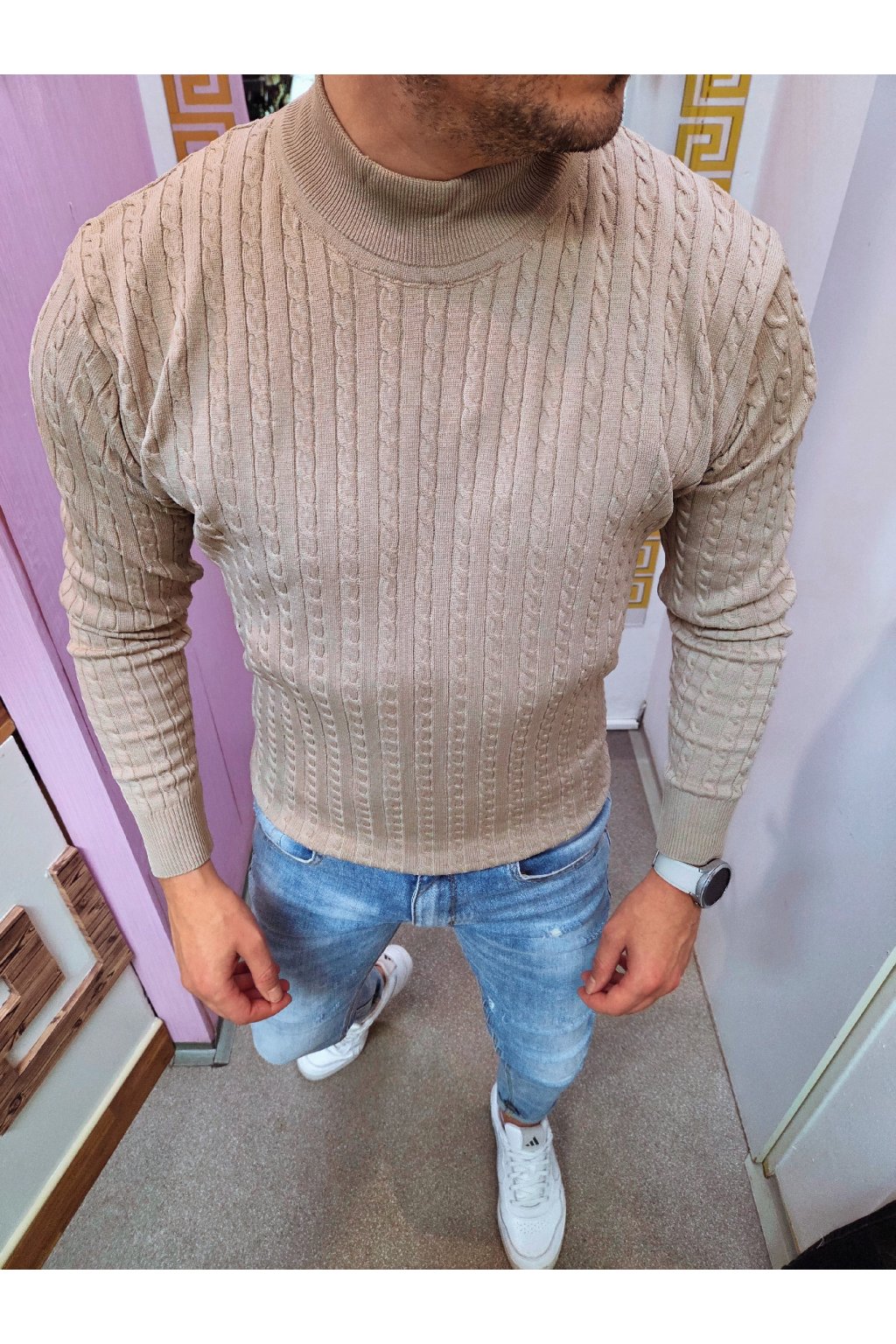 Stylový pánský svetr v moderní béžové barvě, ideální pro každodenní nošení i elegantnější outfit. Pletený vzor „cable knit“ dodává svetru strukturu a nadčasový vzhled. Materiál je příjemný, měkký a přizpůsobivý postavě. Perfektně sedí k džínám, cargo kalhotám i elegantnějším chinos.