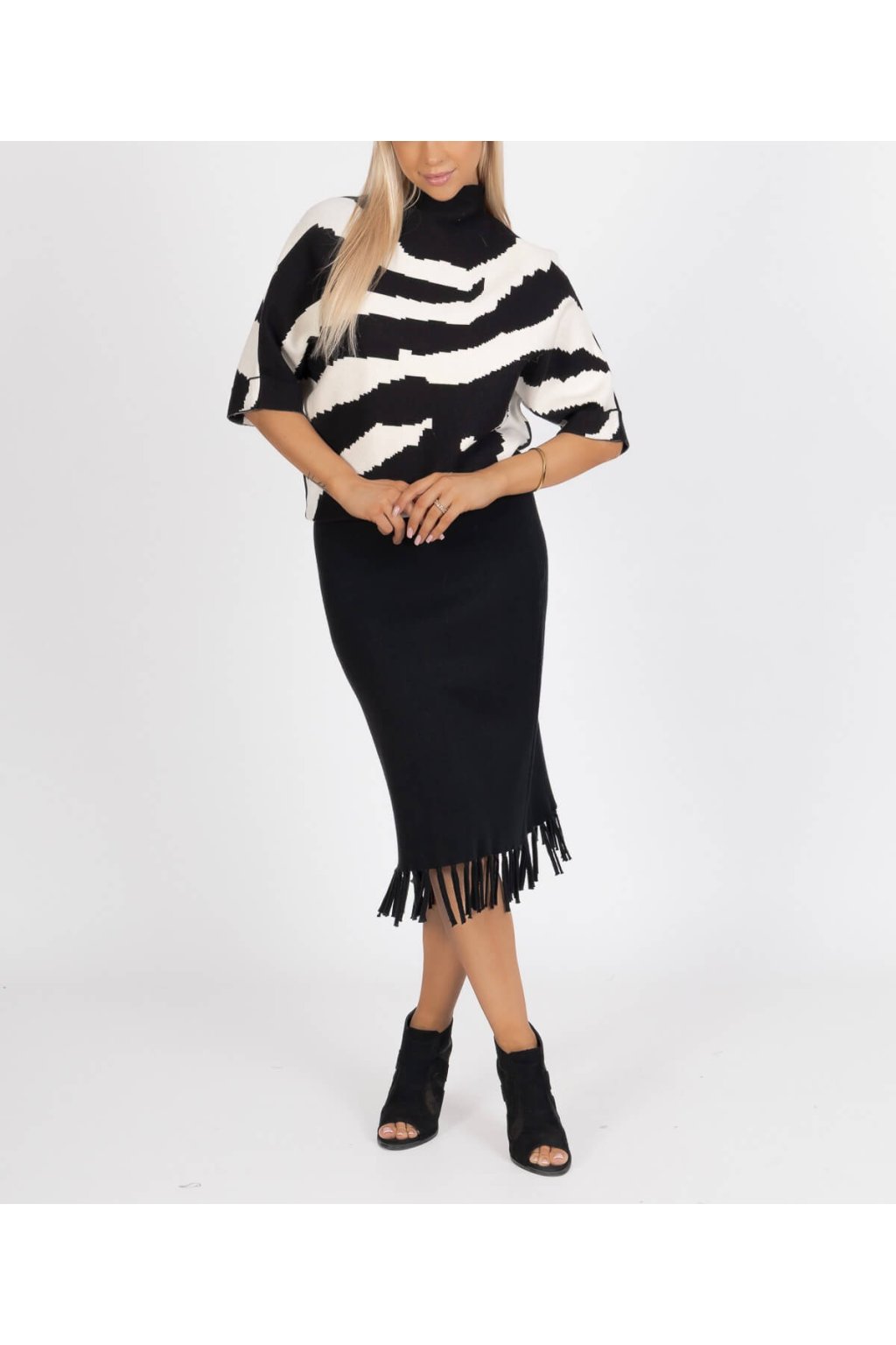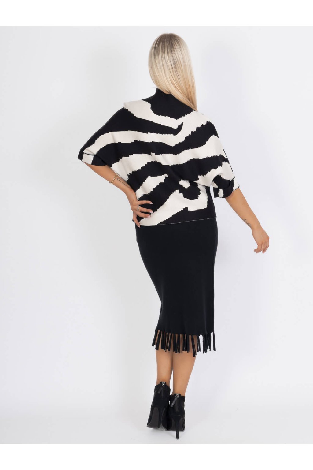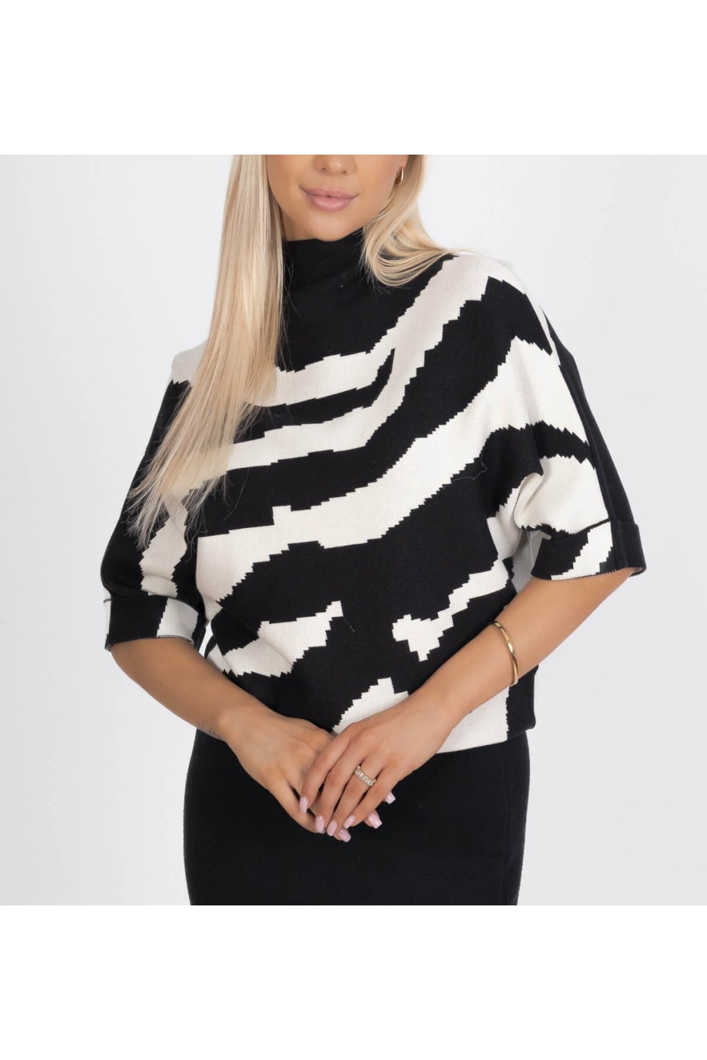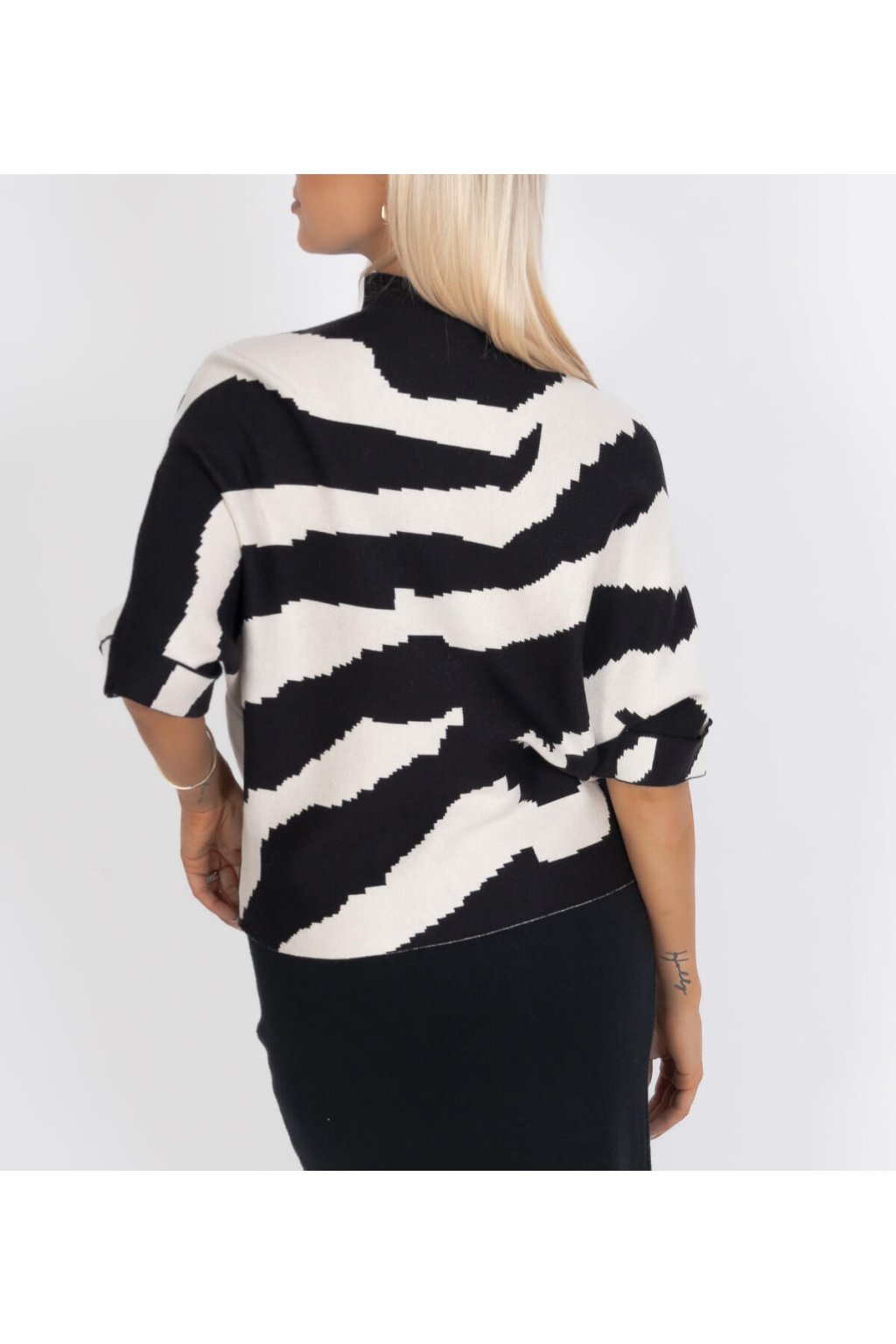 Svetr s krátkým rukávem a zebřím potiskem. Šířka v podpaží: 62 cm. Délka: 55 cm. Univerzální velikost