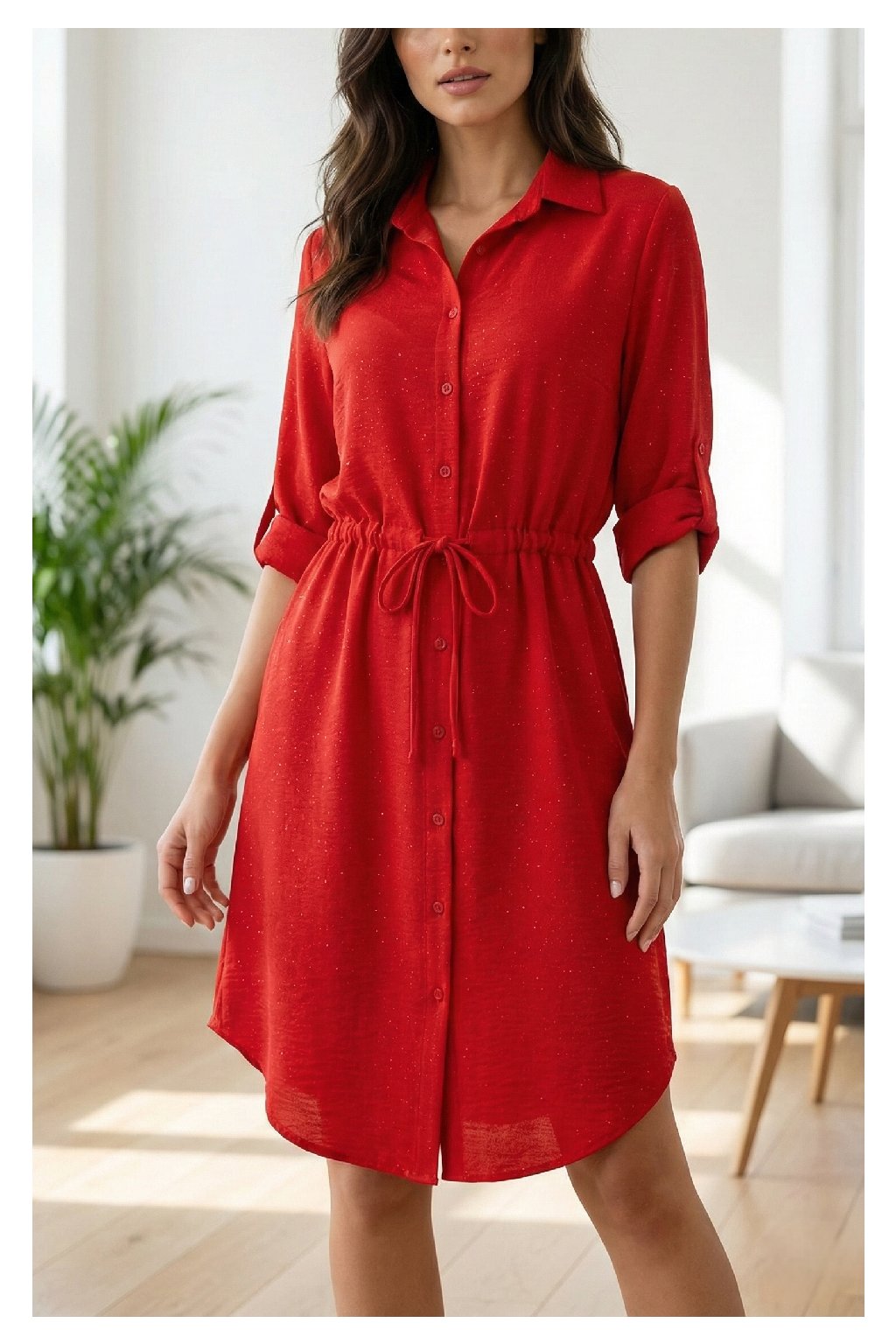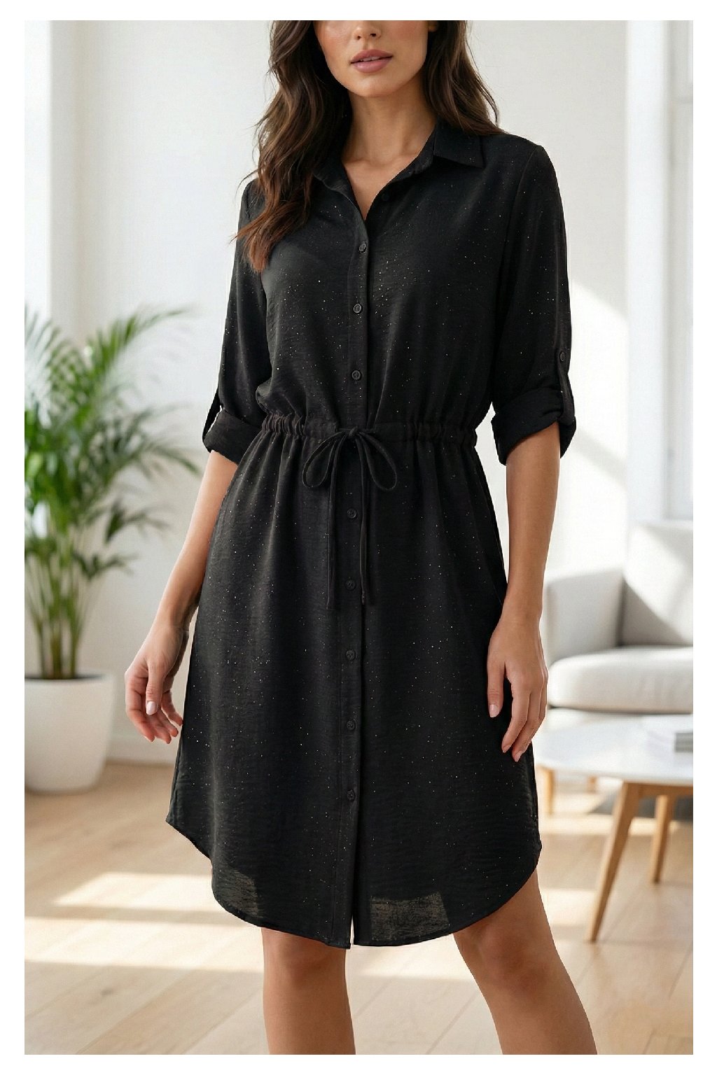Zazářte během vánočních svátků v našich třpytivých košilových šatech, které spojují styl, eleganci a pohodlí. Jemné zlaté třpytky dodávají šatům sváteční kouzlo a decentní lesk, který krásně vynikne při světle vánočního stromku i svíček.